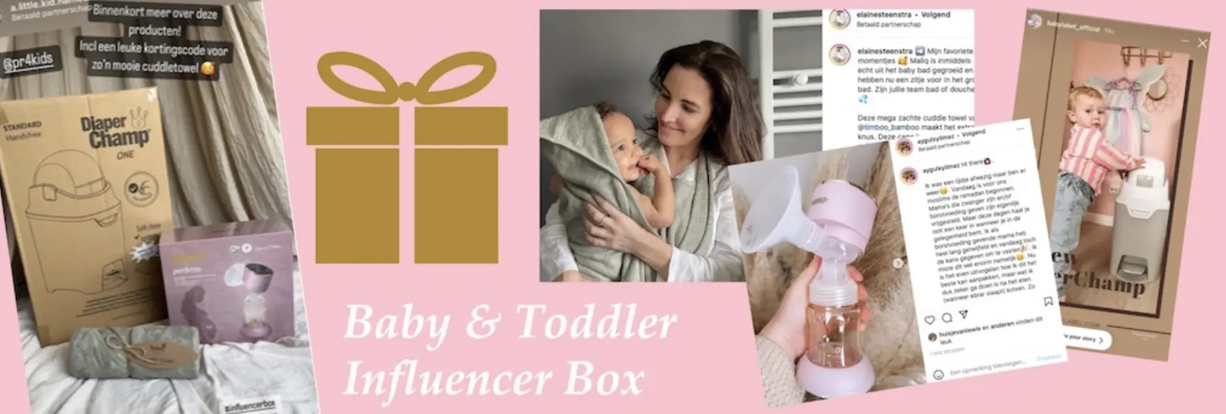 Contact opnemen Contact opnemenVier keer per jaar verstuurt BabyWereld in samenwerking met PR4Kids een Baby of Toddler Box naar ongeveer 20 influencers. Zij maken vervolgens posts en/of reels (filmpjes) van de deelnemende merken en producten. In elke box zit een maximaal aantal producten, met een minimale waarde van 25 euro per product.
